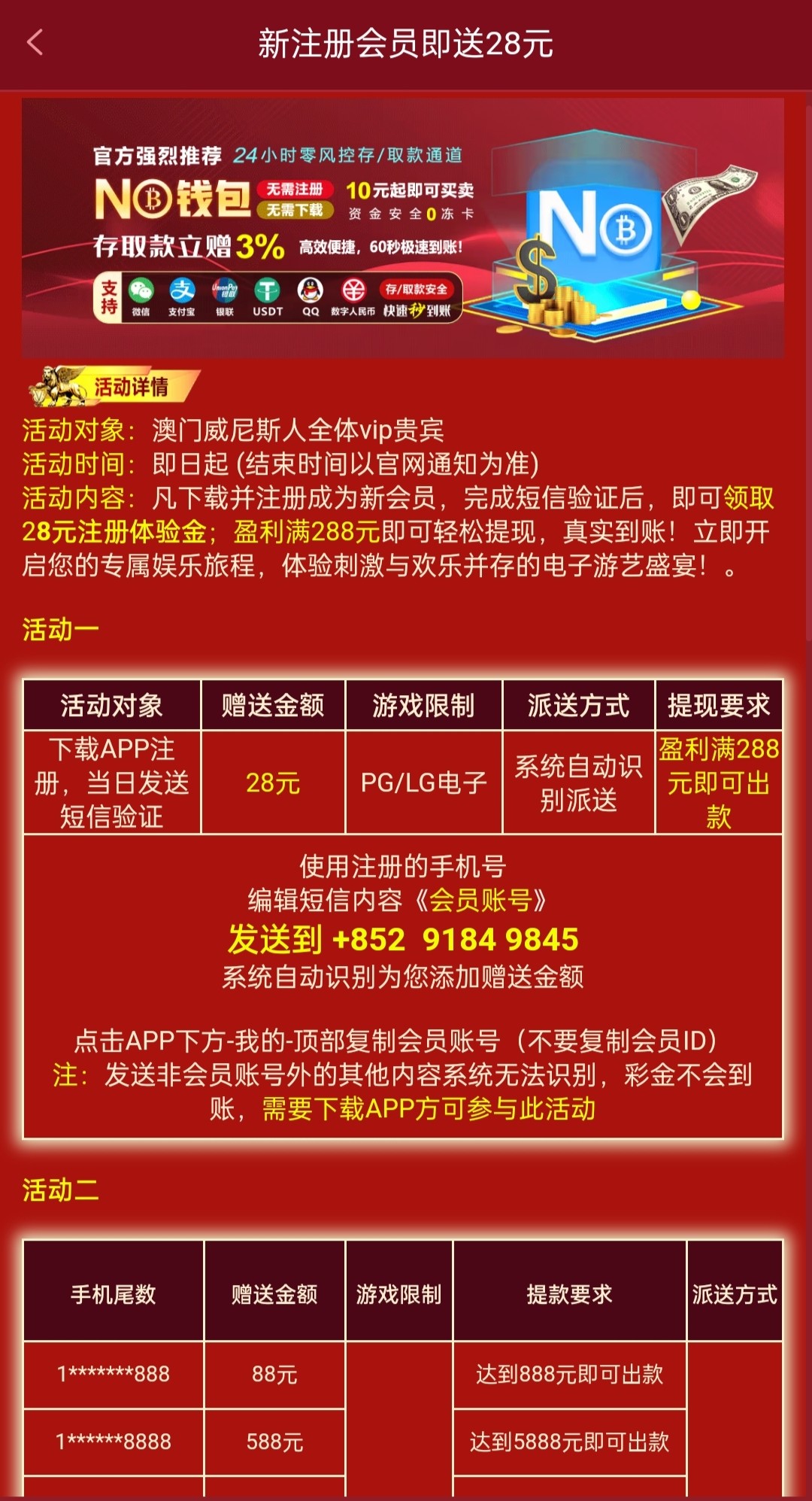 新用户注册下载APP绑定信息发短信送28彩金,具体自测吧