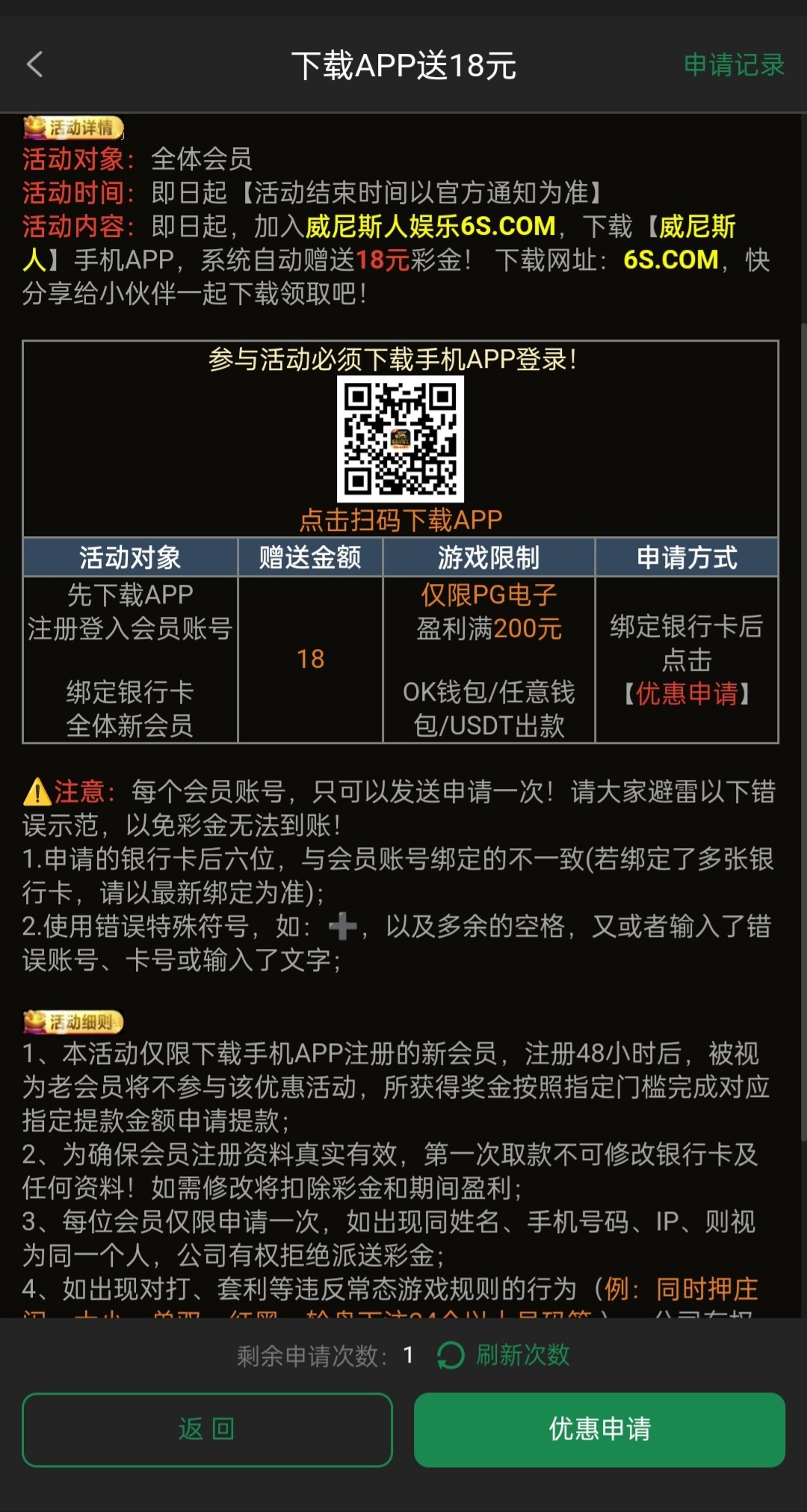 新用户注册下载APP绑定信息自助申请18注册彩金,具体自测吧
