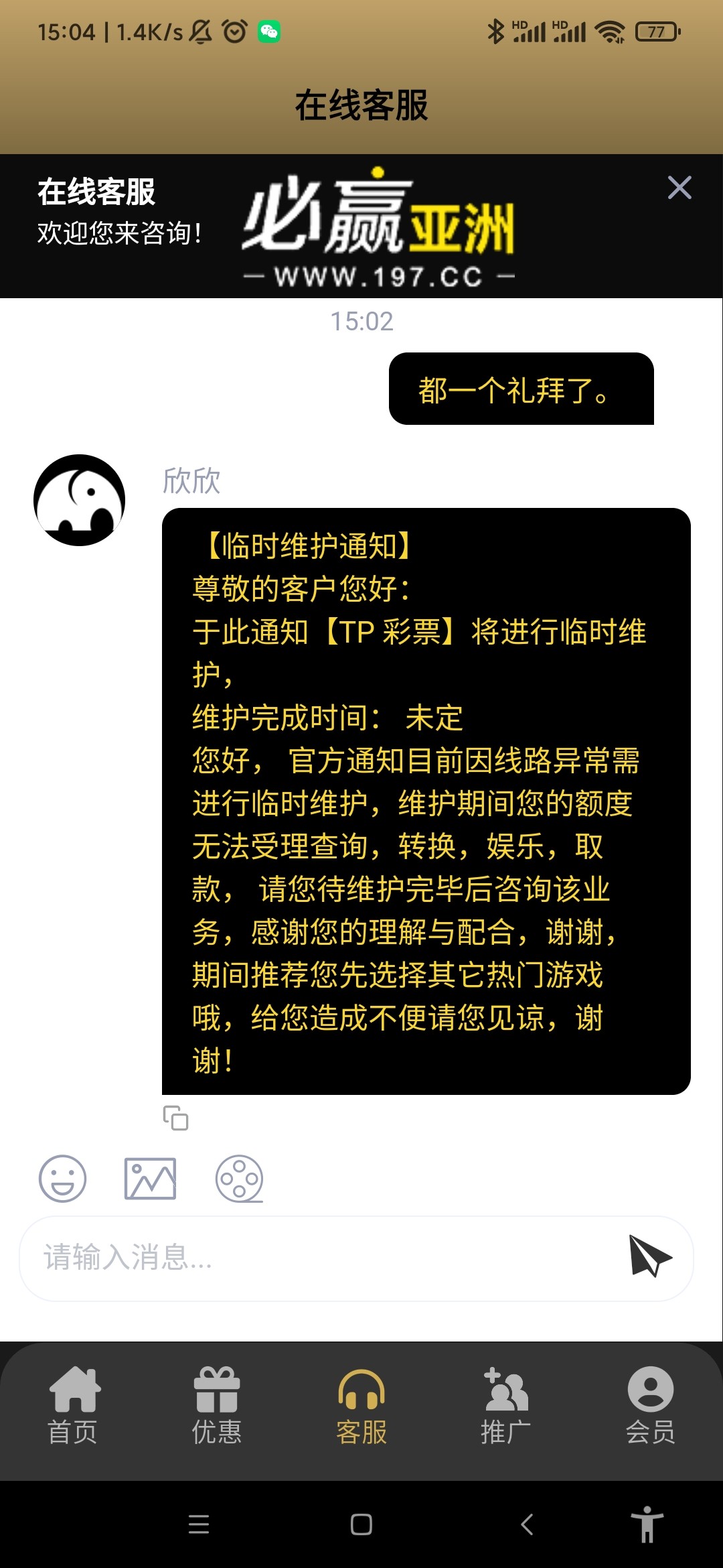 我的197必赢tp彩票也是维护中,应该是全体会员维护了