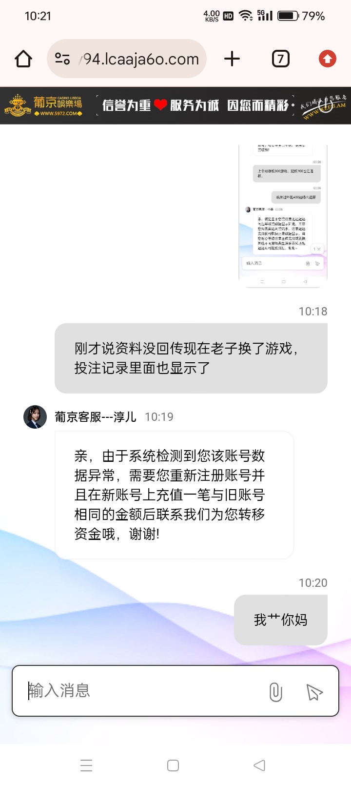 734147148 我v7都给罚流水了还是要玩pg电子打10倍流水的那种明显是输不起了。不过我在他家还是赢了几万看我没玩那么大就开始恶心人了。