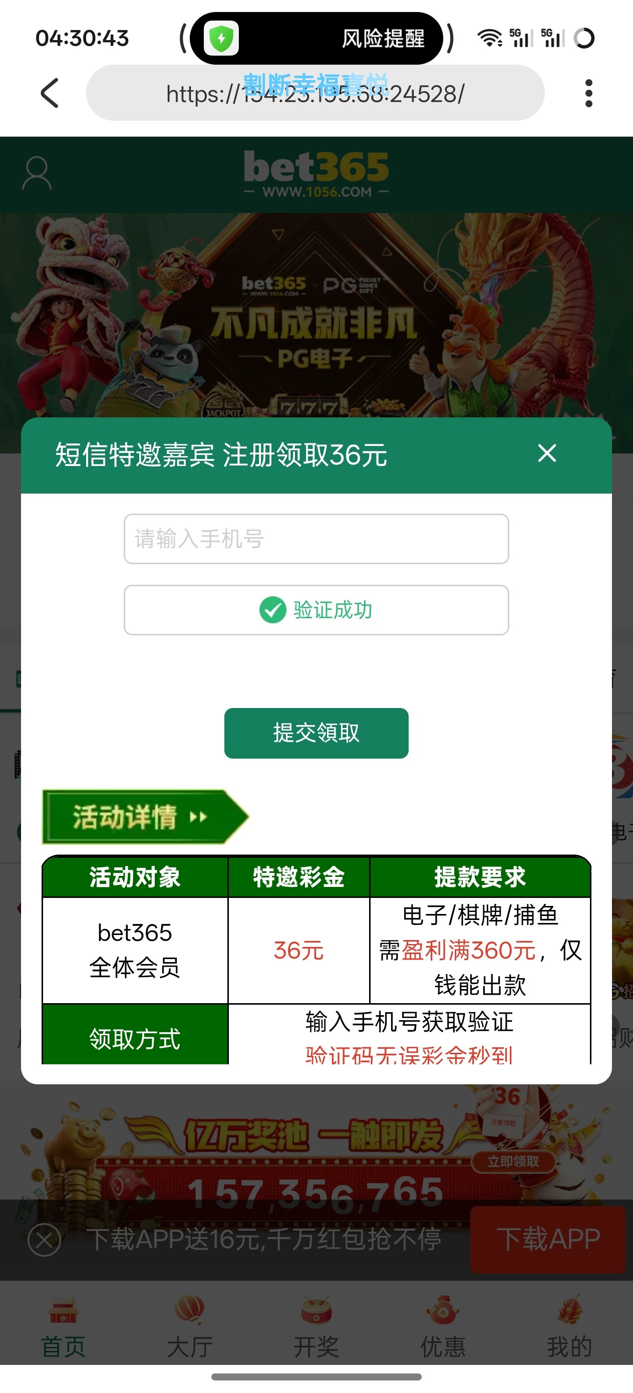 bet365特邀36彩金