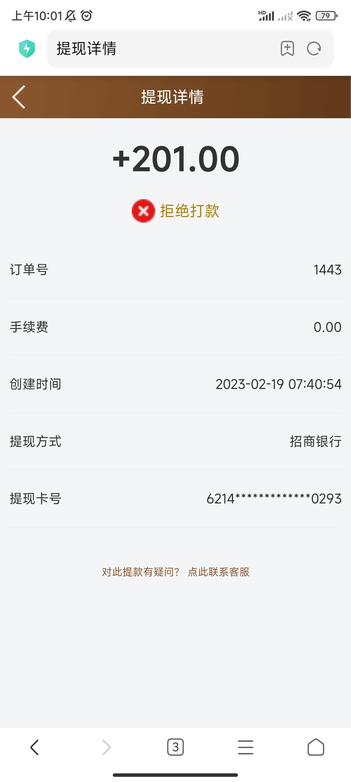 提了一百目前没到账
