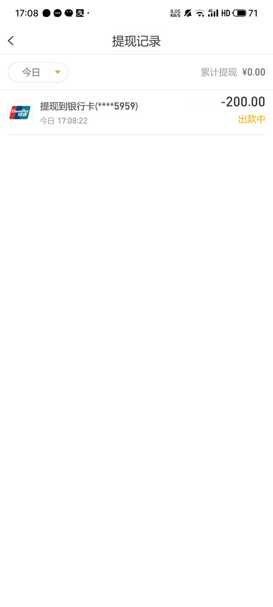提300到账,本来能提460的,浪了
