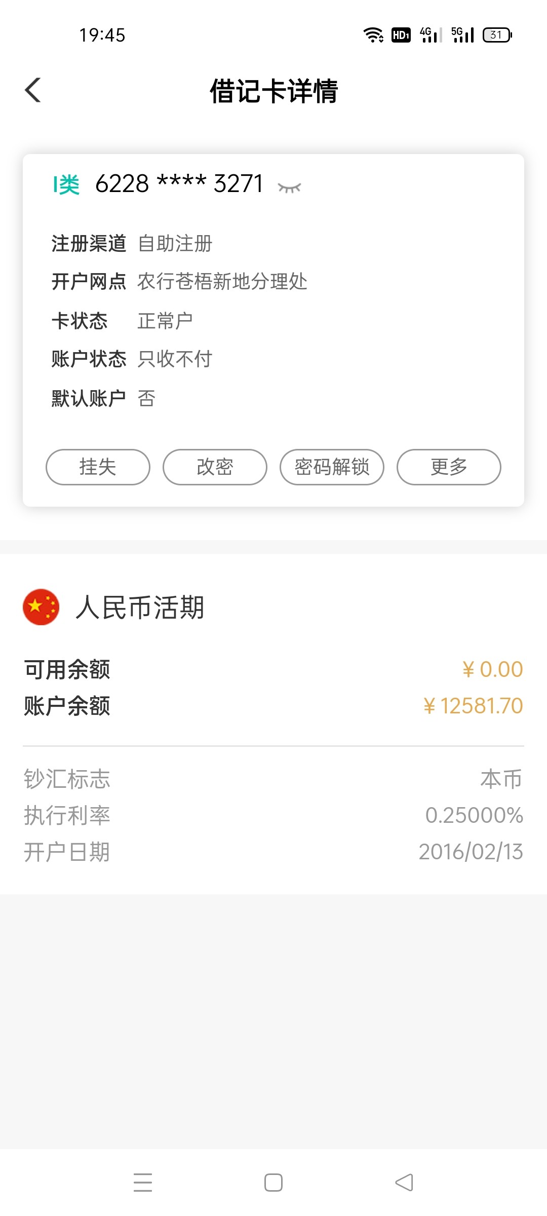 我就有张卡,只能去柜台取钱,可以收网上转的钱,只是网上付不了,永远不用担心卡用不了了哈哈
