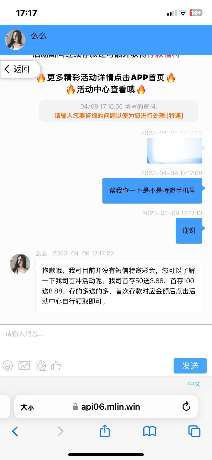 我就说电话彩金申请他找我要图手机号和id我就发了手机号和ID直接送了