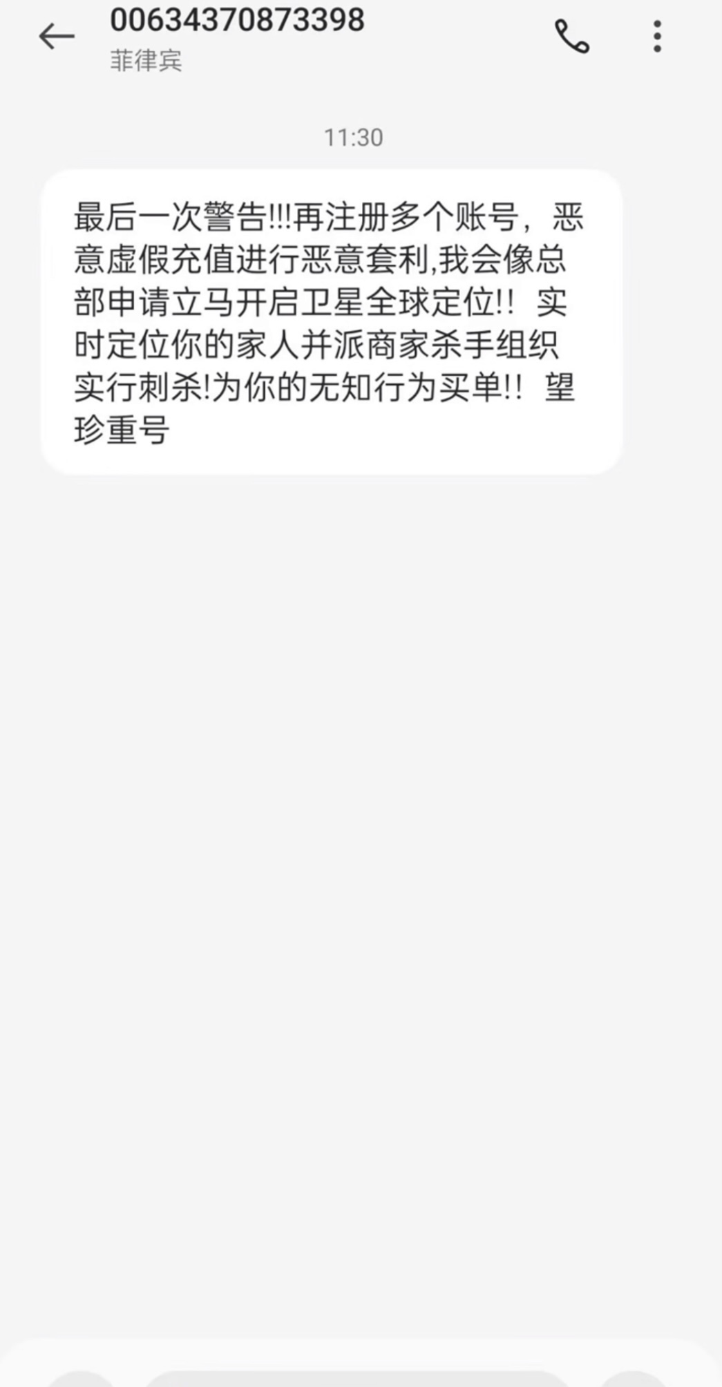 楼主因你犯了恐吓老哥罪,现已定位到你实时位置,菲律宾顶级杀手正在赶往,好自为之吧