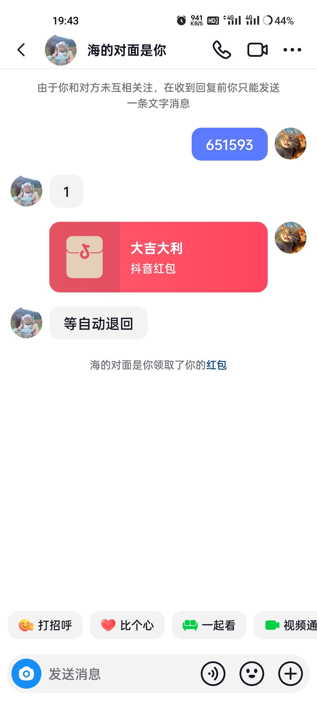 避雷抖音红包付款,说等自动退回的直接去找客服别傻等着退回,第二天或者订单过期他就会给抢了,第二天找客服都难搞