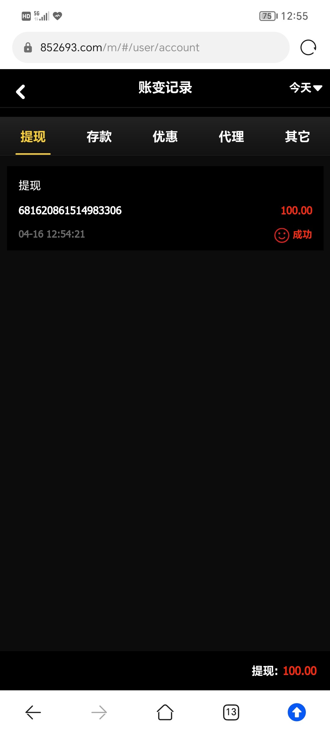 一倍流水提现秒到账  一分钟都不用就到账了