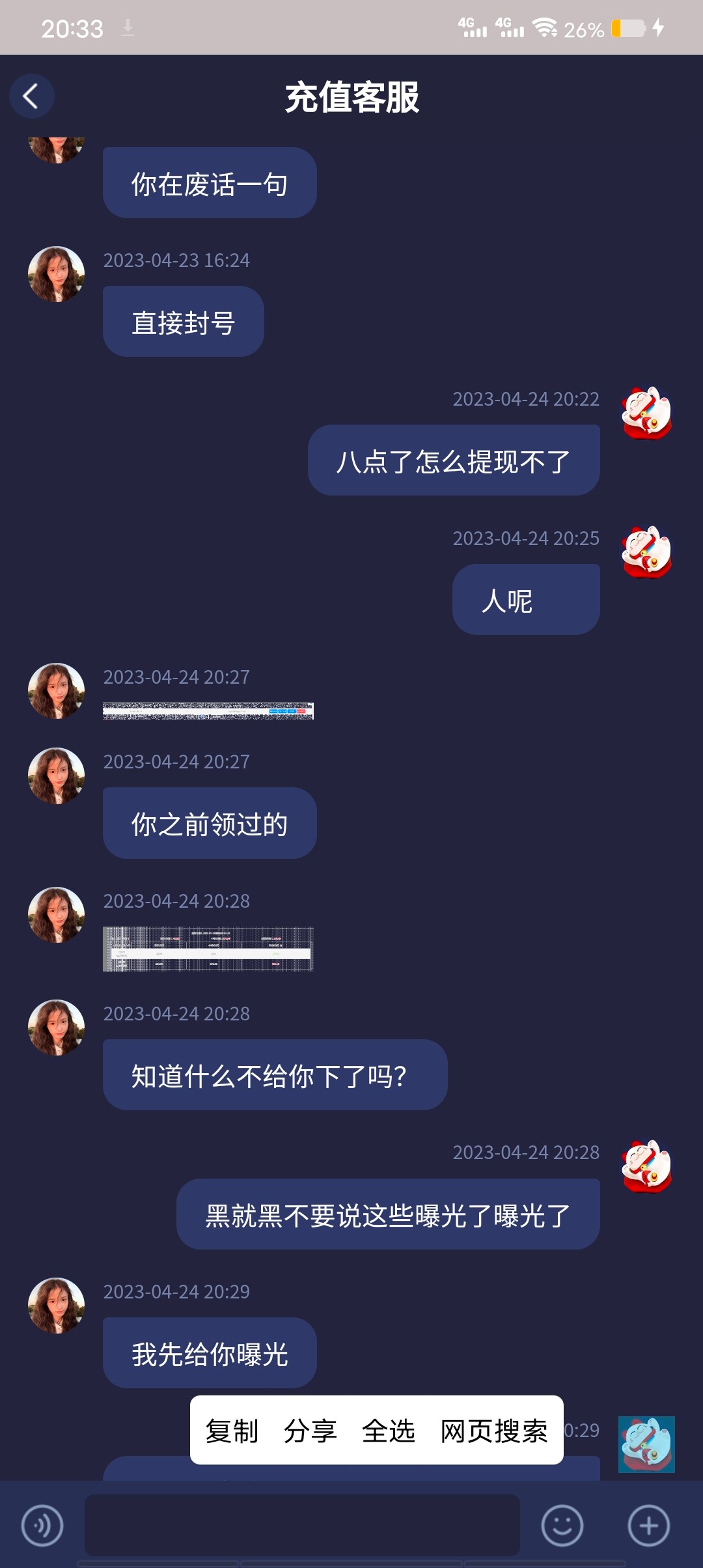 我也被黑了 直接冻结 送了28 打到330