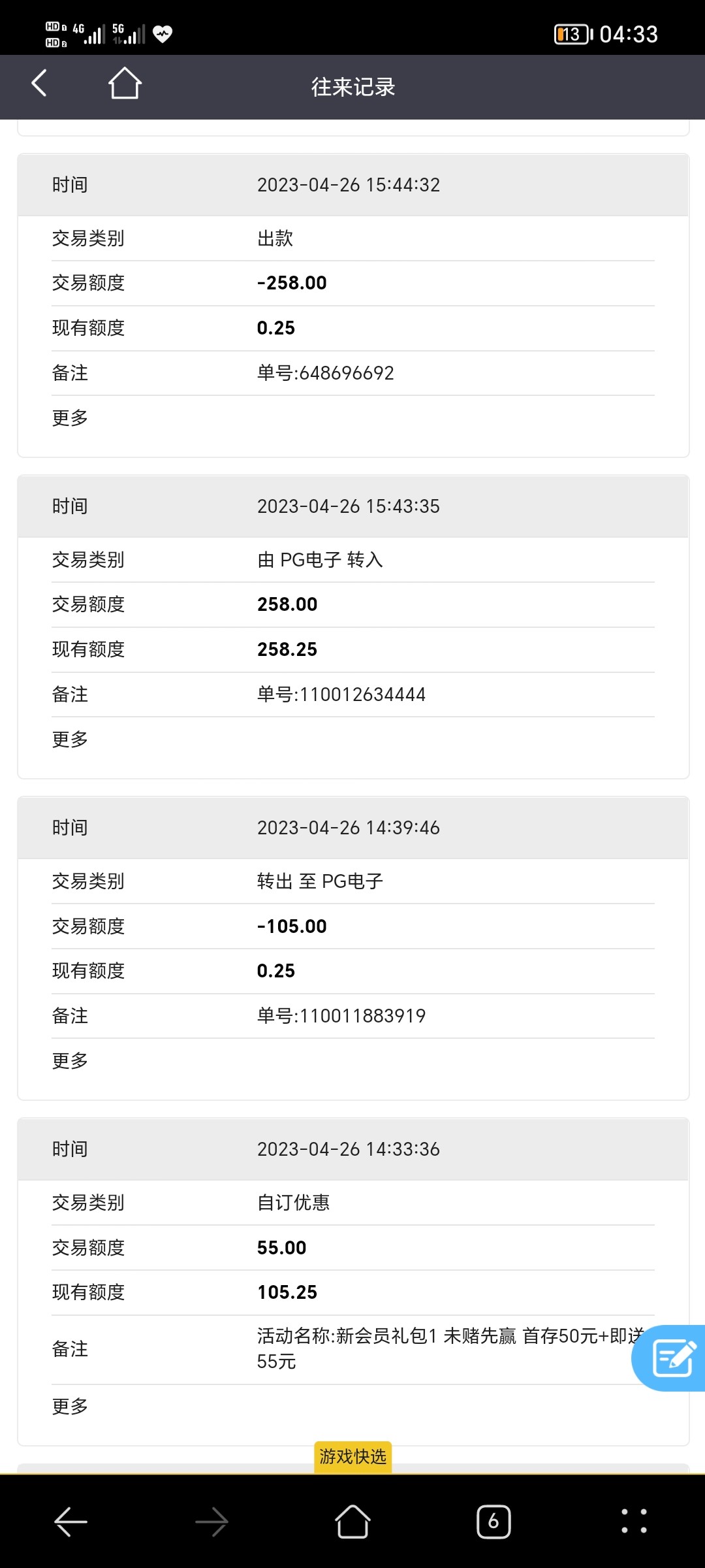 套彩出100,到账