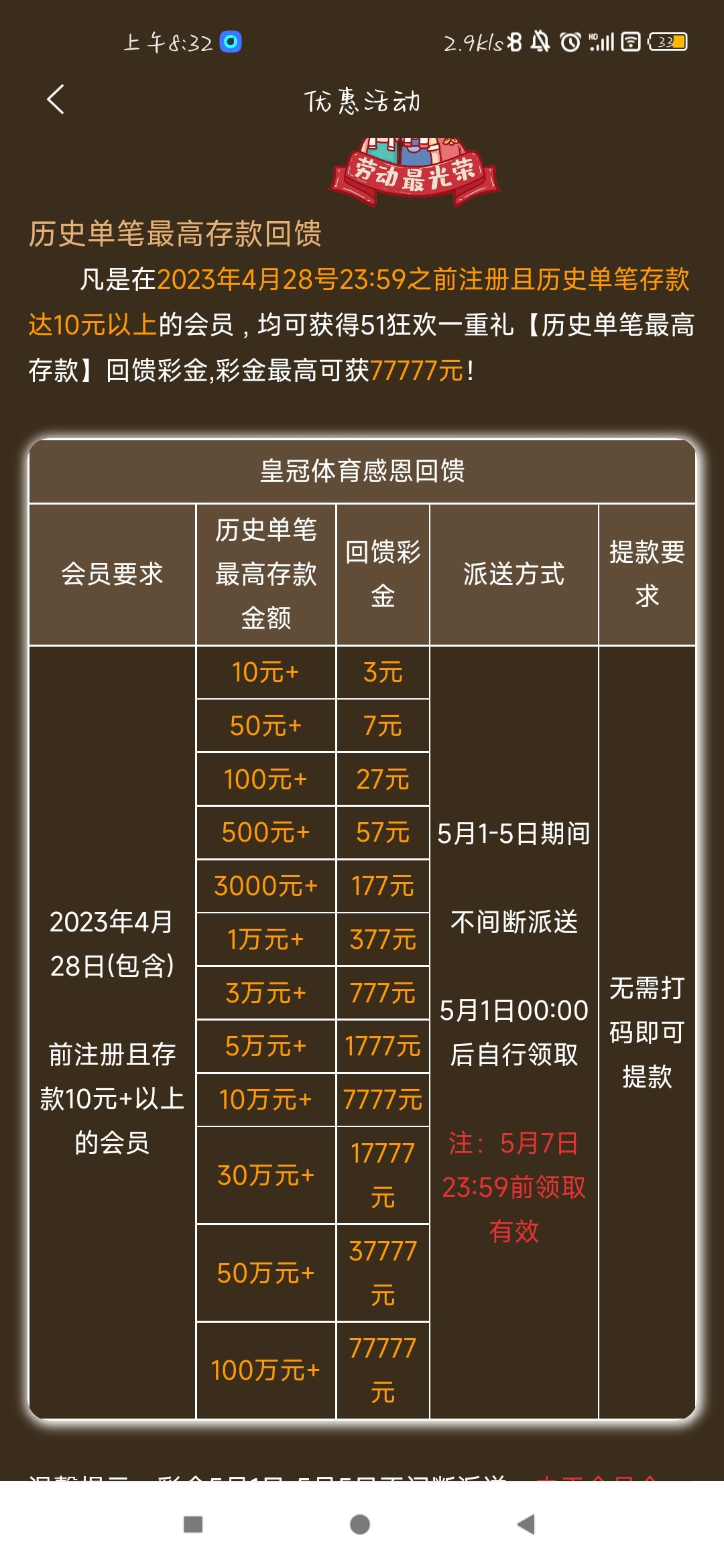 227的5.1回馈彩金