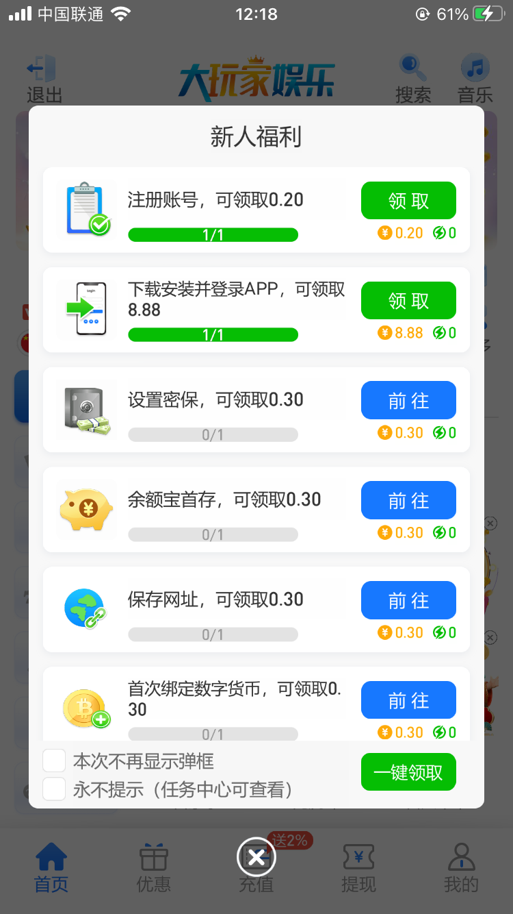 领了9.98,10元起玩