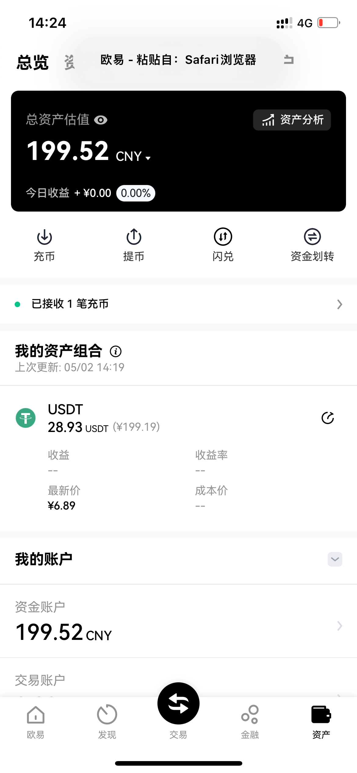 提300欧易秒到
