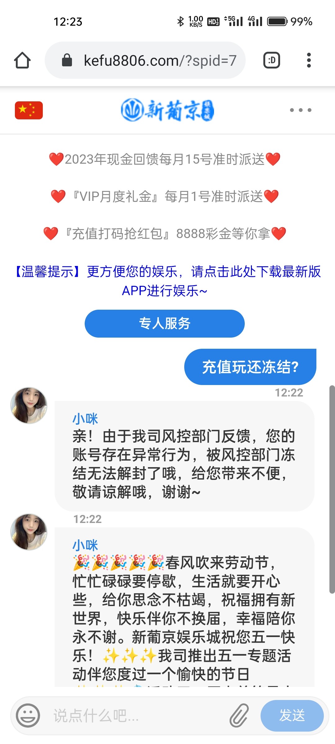 自己注意吧,充值100上300,提现冻结账号,连客服都冻结了