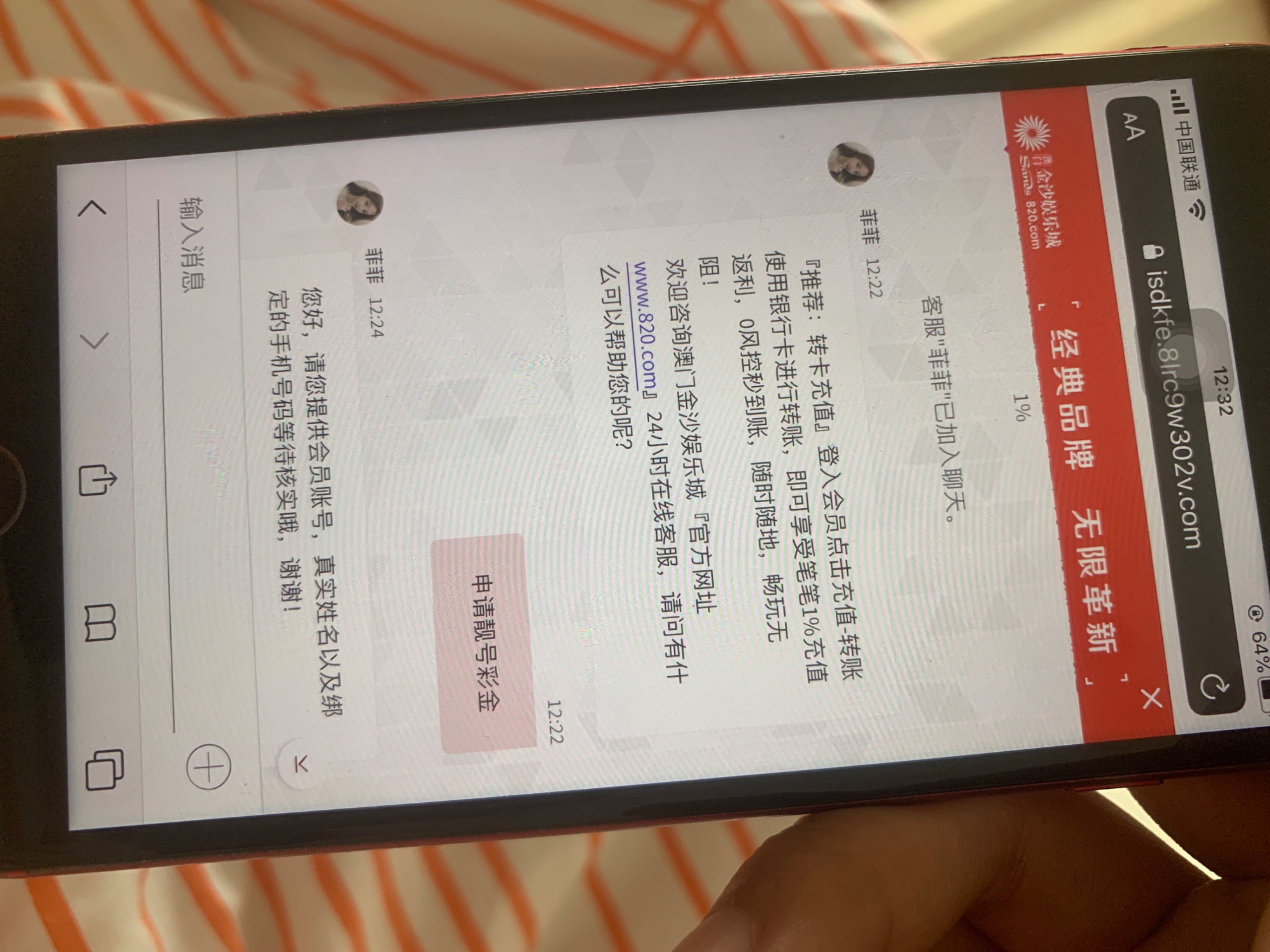 找客服申请靓号彩金还是什么?哥哥说清楚啊
