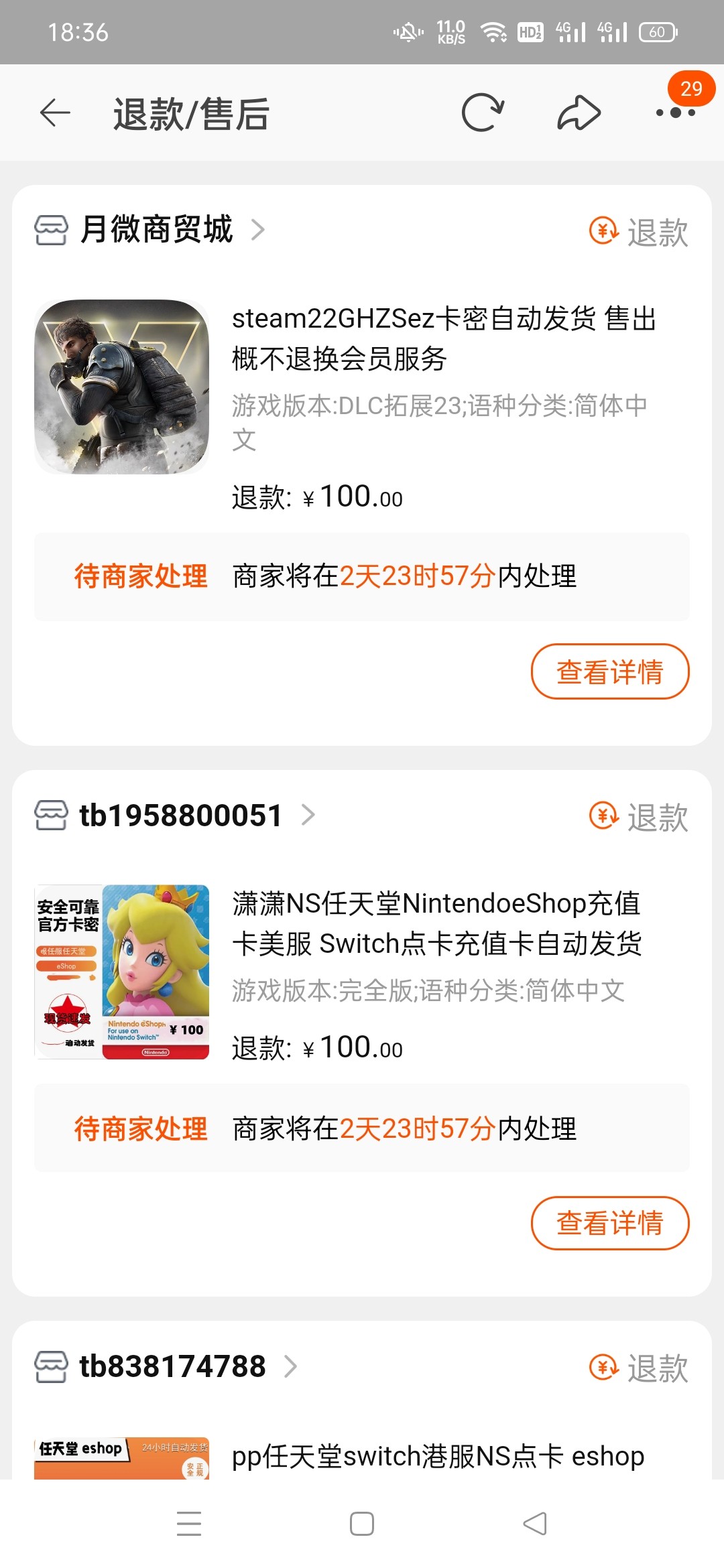 steam我试了,没退成,商家拒绝了,淘宝介入说给我申请90红包补偿,完事又给我说没申请成功