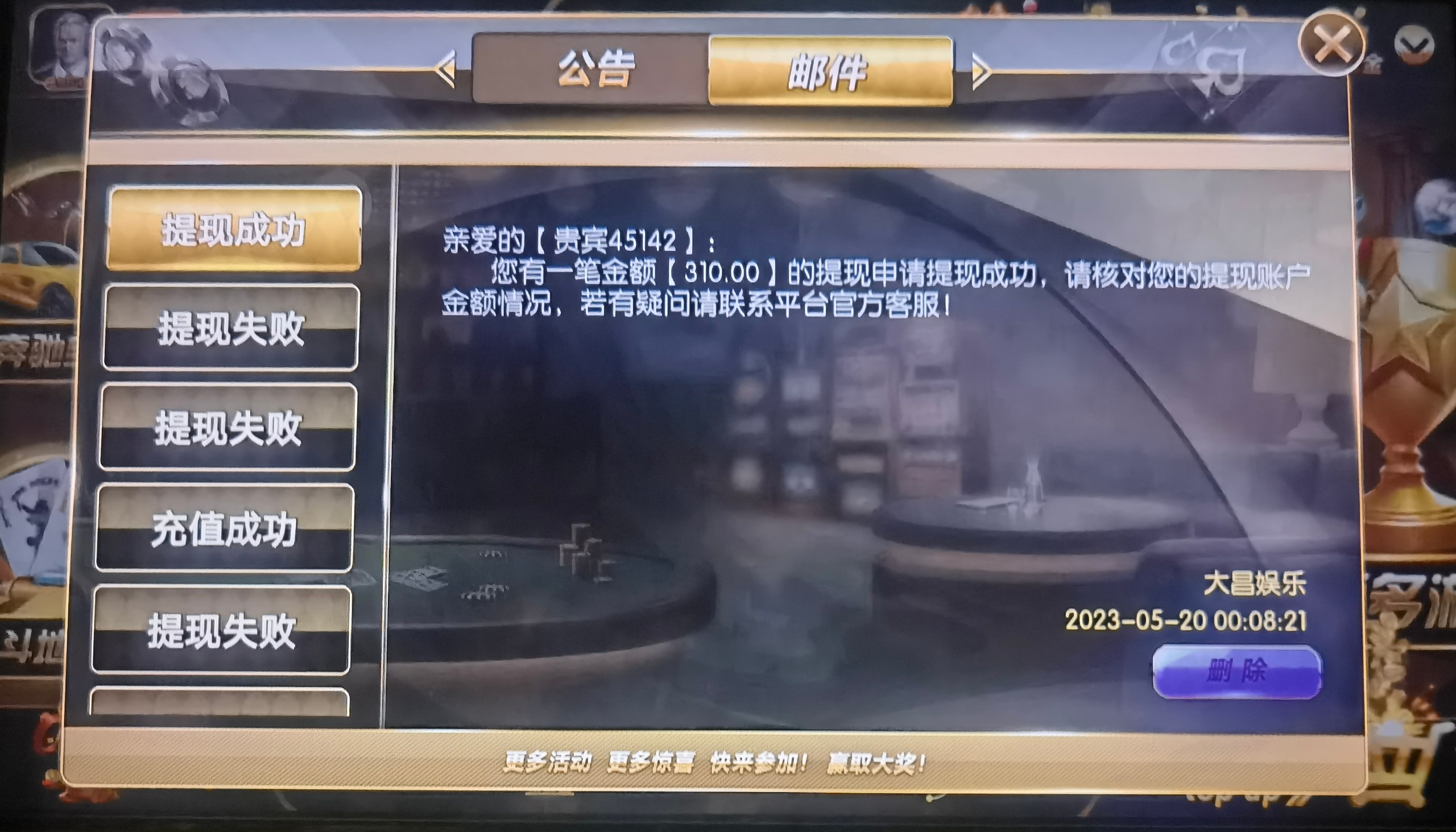 别去了,大昌g,提现充值,充值金额1倍水,赠送彩金3倍水,我打了500水,提现退回了,现在游戏的倍率已经调了,牛牛连续二十把无牛,你没看错全是无牛,牛一都没有